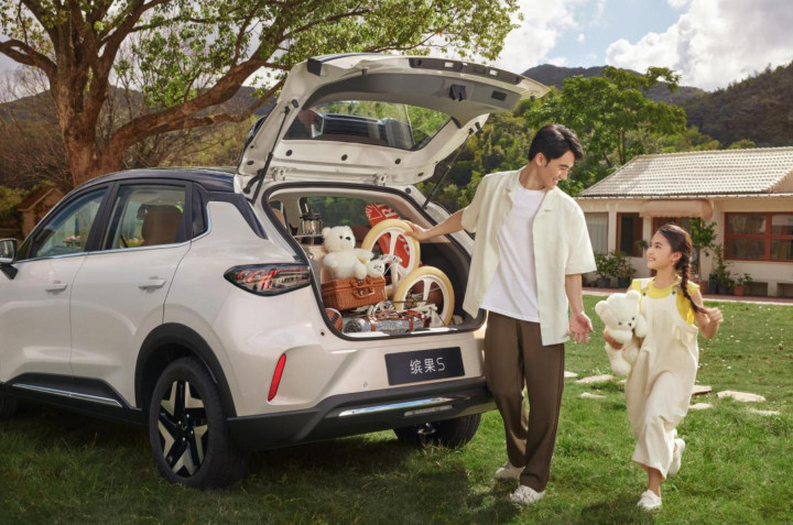 空间方面也不用操心,缤果S是五门五座的设计,“得房率”特别高,有84%,前后排坐进去都能舒展身体,不会觉得挤得慌。后备厢也是下沉式的,容积能到1450L,而且车里还有25个小储物空间,周末带家人去郊游放行李,或者平时带娃出门放奶瓶、尿不湿,都能装得下,特别实用。