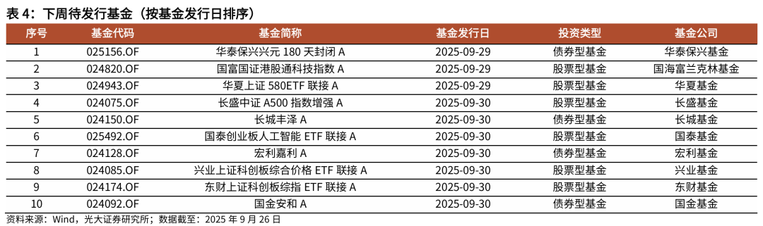 下周全市场待发行基金共10只,从类型来看,股票型基金6只、债券型基金4只。