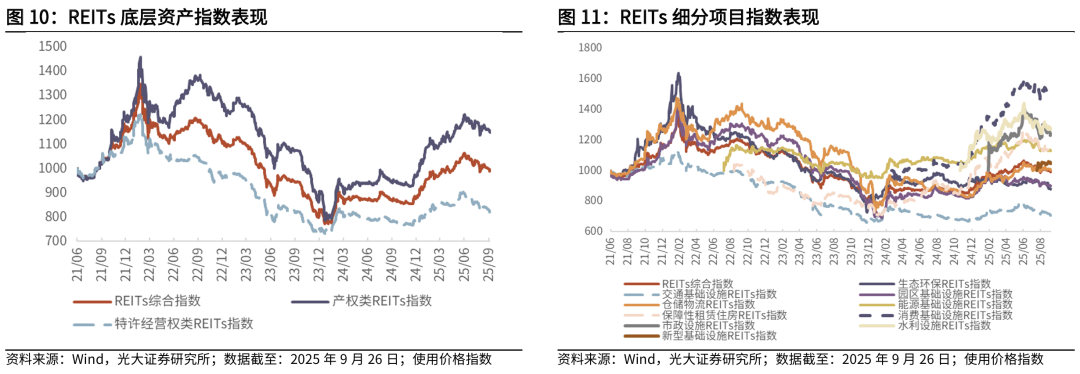 截至2025年9月26日,本周REITs综合指数下跌1.04%。底层资产指数方面,产权类REITs指数下跌0.99%,特许经营权类REITs指数下跌1.13%。细分项目指数方面,能源基础设施REITs指数下跌0.06%。